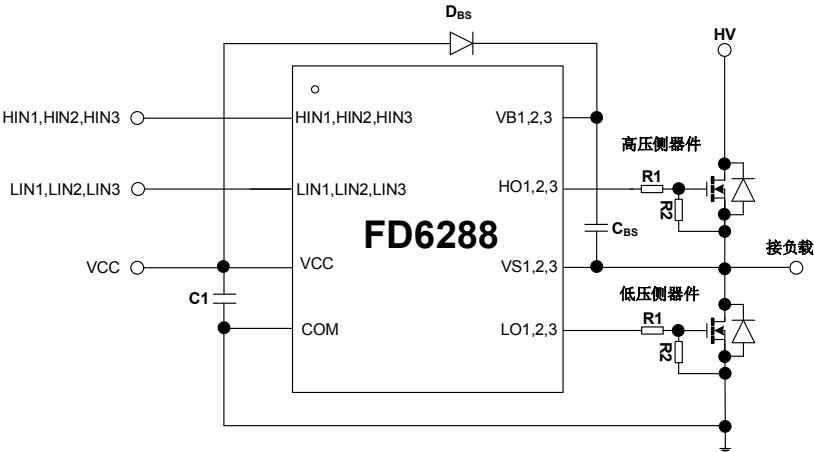 FD6288:三相栅极驱动器,支持6个N-MOSFET,峰值电流±1.8A,内置死区与多重保护,适用于高效电机控制系统。